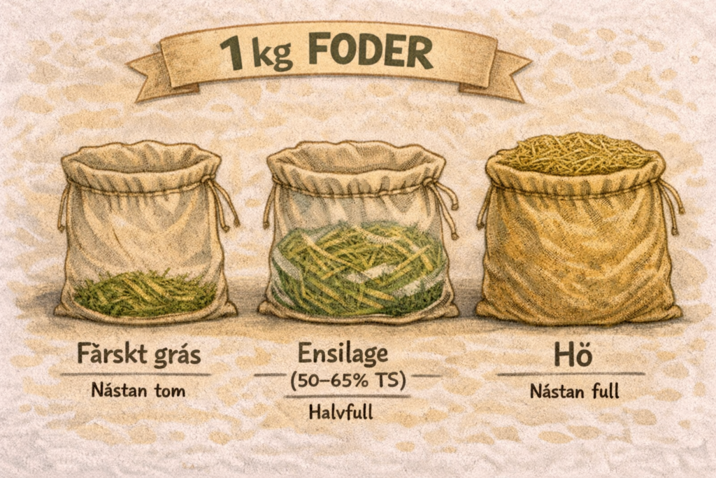 | Foder | Ungefärlig TS-halt | Vad betyder det i praktiken? |